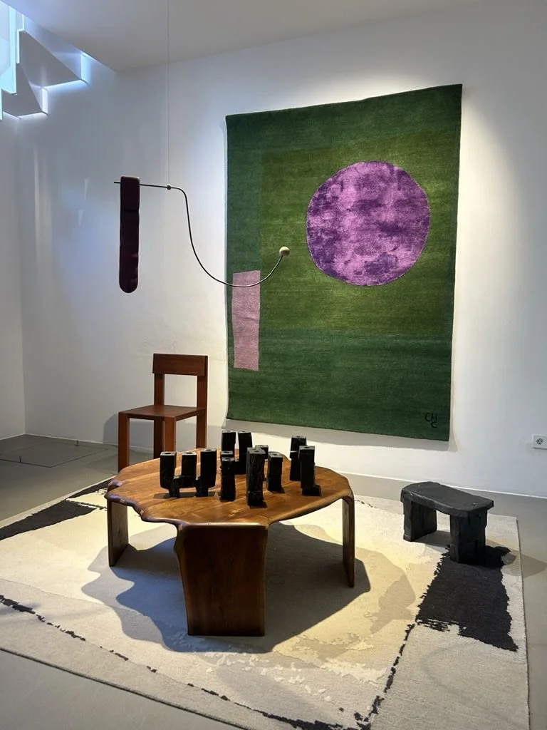 Our rugs are shown alongside works by artists and makers who share a deep respect for material and process. There’s a slowness to the show — surfaces left raw, traces of fire, woven forms that speak in colour and weight.